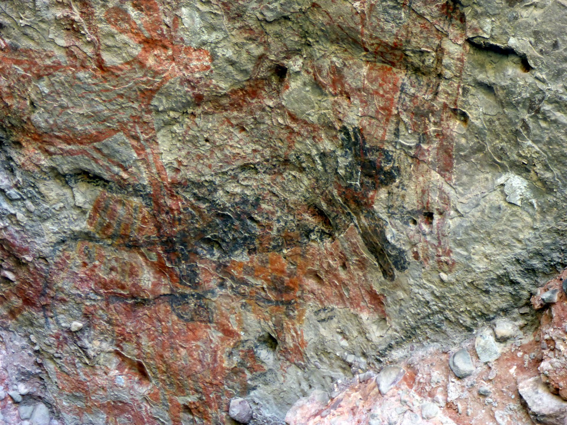 The guide Senor Francisco told me how we will meet there. He will take me there on foot. “On foot?” I asked to make sure I got it ride. “Si Senor.” OK, I drove my moto back to the hostel, grab a bottle of water and vamos …. holy, at 35 degree and it wasn’t around the corner. Maybe 2-3km? or something like this (today I figured out, just 1.5km). Senor Francisco waited already. What?, already there? Damn, I’m so slow. Anyhow, he open the gate and there it is, all the drawings or paintings.